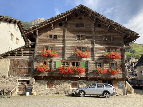 Der Dorfplatz von Vals mit seinen traditionellen Holzhäusern ist vielleicht der bekannteste im Büdner Walsergebiet.