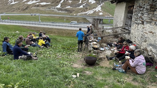 Die wohlverdiente Mittagspause mit heissen Bratwürsten vom Grill und Hörnlisalat lockte die fleissigen Helferinnen und Helfer aus dem Wald und sorgte für neue Energie für den Nach-mittag. Es wurde viel gelacht und angeregt geplaudert - die Stimmung war ausgelassen und herzlich. Nach zwei weiteren Arbeitsstunden und ersten Ermüdungserscheinungen war beinahe die Hälfte aller Bäumchen gepflanzt. Die letzten begonnenen Arbeiten wurden noch zu Ende geführt, bevor sich die Gruppe auf den Rückweg zum Parkplatz und weiter zum Hotel Roflaschlucht machte. Dort stand zunächst eine Besichtigung des gleichnamigen Wasserfalls auf dem Programm. Anschliessend begann die diesjährige Jahreshauptversammlung mit einem gemeinsamen Nachtessen in geselliger Runde.