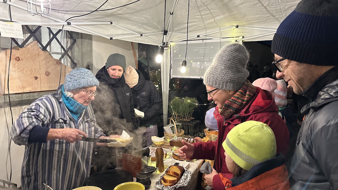 Während Tamara, Fabian und Livia Arvenpflanzen verschenkten und Kuchenstücke verkauften, kam ich mit vielen Gästen ins Gespräch. Irgendwann kroch dann doch die klirrende Kälte in unsere Jacken, und ein Blick zum funkelnden Sternenhimmel machte klar: Es war Zeit, zusammenzupacken und den gelungenen Abend ausklingen zu lassen.
