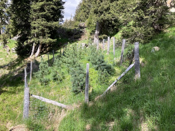 Das Projekt „Zahütta“ ist in einer Waldlichtung im Cassanawald zwischen Hinterrhein und Nufenen und liegt am alten Walserweg hinauf auf die Alp Piänetsch. Es wurde im Jahre 2007 lanciert und besteht aus zwei Aufforstungen. Während die Arven im oberen Teil schön gedeihen, zerstörte eine vom Sturm entwurzelte Fichte die Jungpflanzen im unteren Teil. Der zerstörte Zaun wurde inzwischen repariert. Es fehlen aber noch die jungen Bäumchen, die gepflanzt werden müssen.