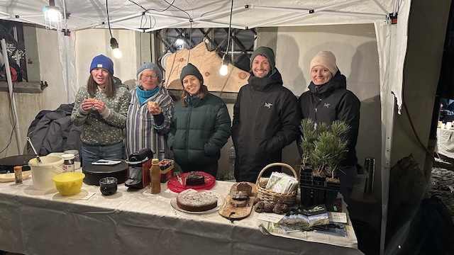 Der Austausch mit der einheimischen Bevölkerung und das Informieren über unsere Vereinsarbeit sind für uns zentral. Deshalb waren wir am Altjahrmarkt in Splügen mit einem eigenen Stand dabei. Die Idee kam sehr gut an - besonders bei Beth, die voller Tatendrang steckte und mit kreativen Vorschlägen nur so sprudelte. Zusammen mit Anna fiel die Wahl schliesslich auf Crêpes. Diese wurden fleissig ausprobiert, perfektioniert und an freiwilligen Testpersonen verköstigt. Damian schnitzte unser Vereinslogo in Arven holz, Tamara sorgte mit verschiedenen selbstgemachten Kuchen für zusätzliche Leckereien - wir waren bereit.